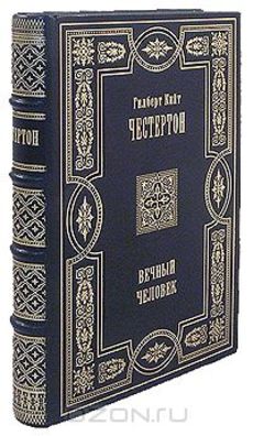 Переплет ручной работы из натуральной кожи с тиснением крышки и корешка золотой фольгой, блинтовое тиснение. Кругленый бинтовой корешок. Торшонированные обрезы. Форзацы из мраморной бумаги ручной работы. Формат 130 х 175 мм. Гилберт Кийт Честертон известен в основном как автор детективных рассказов об отце Брауне и Хорне Фишере. Но его религиозно-философский трактат «Вечный человек» Грэм Грин назвал лучшей книгой, написанной в ХХ столетии. Это произведение – очерк истории человечества с точки зрения христианина, и будет интересно всем, кто интересуется философией, историей культуры и религией.